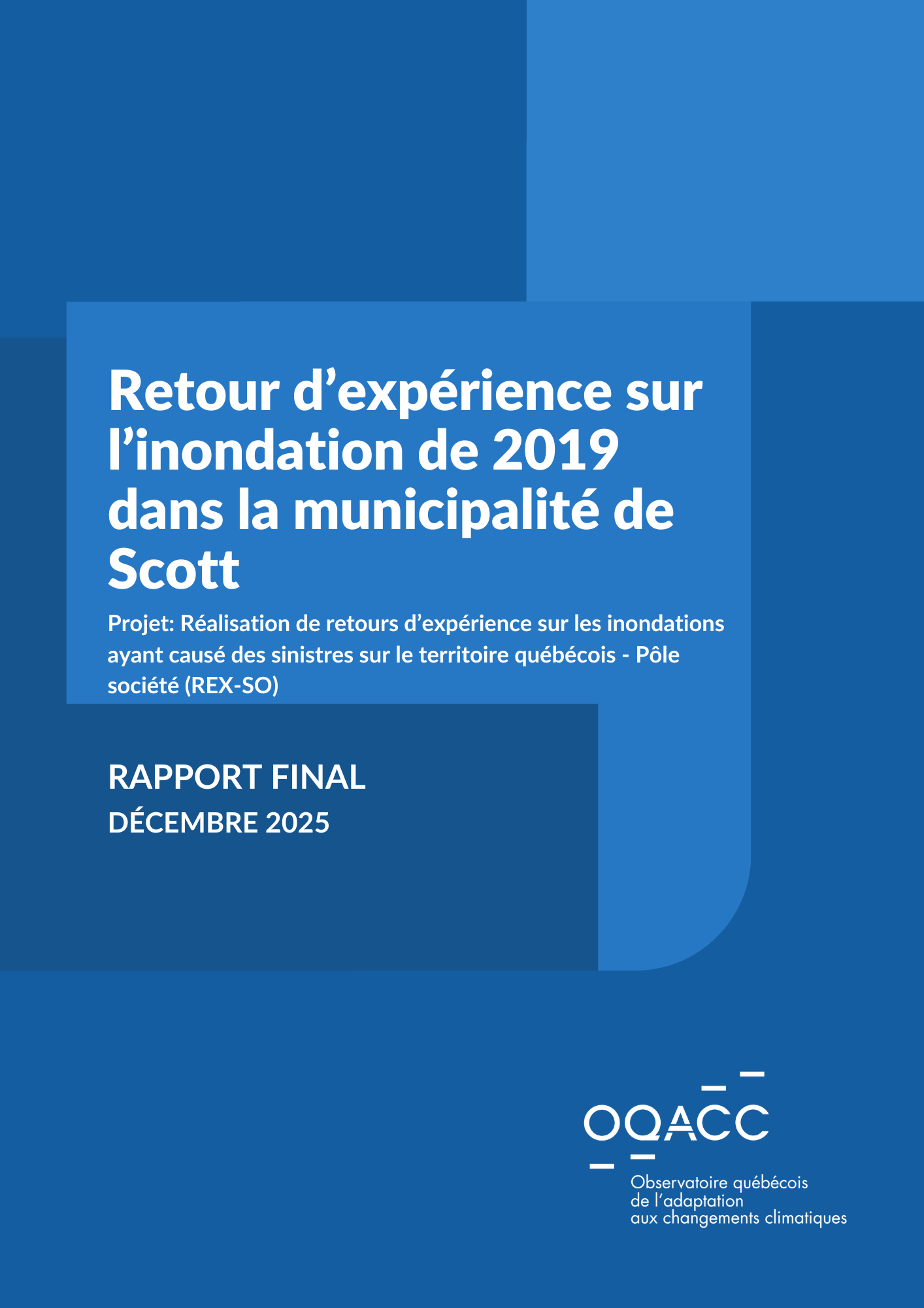 En avril 2019, la municipalité de Scott a été durement touchée par une inondation majeure causée par le débordement de la rivière Chaudière. Cinq ans plus tard, ce rapport présente les résultats d’un retour d’expérience (REX) visant à tirer des enseignements concrets de cet événement marquant.